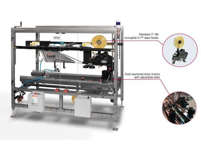 Heavy duty welded tubular steel constructionLifetime warranty on structural frameworkQuick changeovers with digital scales on crank adjustmentsHeavy-duty drive motorsV-Guide drive belts for straight trackingEmergency stops integrated with case packing line and conveyorsAvailable in top or bottom only modelsAutomatic product indexingFour flap foldingOne year warranty on non-wear parts3M Accuglide II+⢠tape heads with Bolt Together Assembly