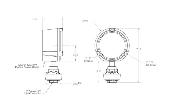 Experience precision and durability with our 1/2" PVDF TuffGuard Gauge Isolator featuring an EPDM diaphragm for accurate pressure transmission. The stainless steel reinforced instrument connection ensures reliability, while the integrally molded design with compressive spoke ribs enhances stress transfer. This isolator boasts a low profile design to eliminate dead volume, integral wrench provisions for easy maintenance, and a replaceable diaphragm for longevity. The included 4.5" Ashcroft Duragauge Process Gauge with vacuum assembly, testing, and calibration guarantees exceptional performance.