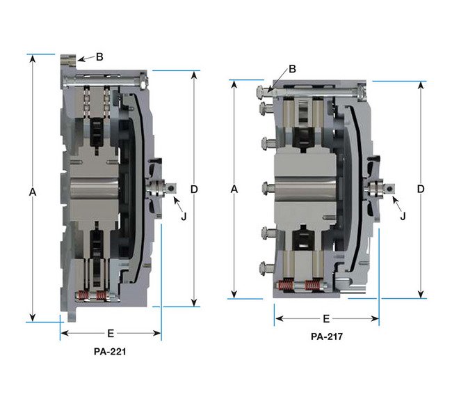 Metallic or organic friction linings are availableLarge surface area piston for maximum torque capacityVentilated floating wear plate for improved heat dissipationEnd-of-shaft mounting only