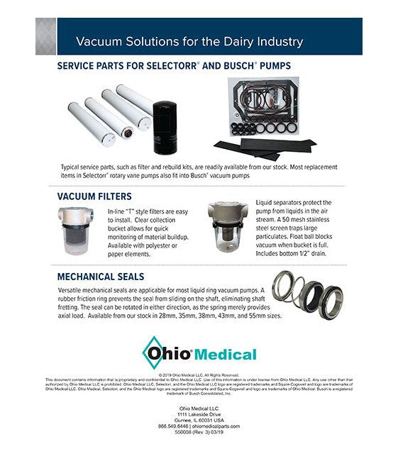 Typical service parts, such as filter and rebuild kits, are readily available from our stock. Most replacement items in Selectorr® rotary vane pumps also fit into Busch® vacuum pumpsExhaust filters are equipped with one way check valves, sealing rings, and heavy duty metallic ends. They are available individually or in filter kits, complete with oil filter and exhaust cover gasket.Rebuild kits include vanes, seals, bearings, taper pins, and exhaust valve seat plates. Gasket kits are also offered for a complete pump rebuild.