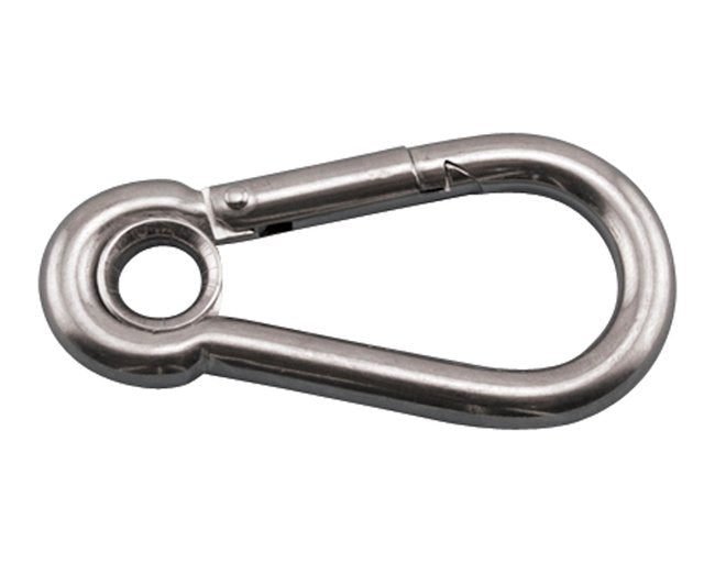 Durable 316 Stainless Steel Spring Clip with Eye for marine and industrial applications. Various sizes available.