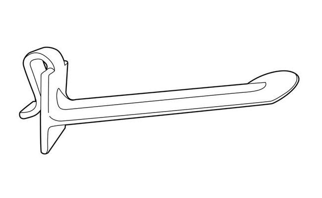 The 4" Stem Length Butterfly Corrugated / Wire Combo Display Hook offers a unique over-the-top back design suitable for corrugated and wire displays. Made of sturdy plastic material, this labor-saving one-piece hook is exceptionally stable and easy to install. With a 0.740" width stem and a 0.250" height, it accommodates packages with delta or butterfly holes. The integrated over-the-top back design on the 3/4" wide x 1" high face plate ensures added strength, preventing sagging. Ideal for small oval slots in 1/8" (B-Flute) to 3/16" (C-Flute) corrugated as well as 0.148" to 0.177" diameter wire. Available in white or black glass-filled nylon material.
