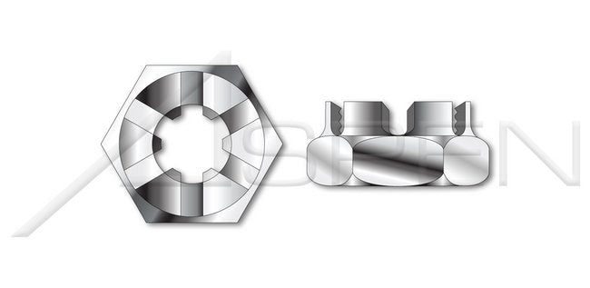 Also known as castellated nuts. Functionally interchangeable with slotted nuts.On castle nuts, the turret end is turned down enabling the lock pin to be wound against the turret.Lock the nut to a mated bolt by using a pin or wire threaded through the bolt and slots on the nut.A2 stainless steel is functionally equivalent to 304 grade, also known as 18-8 stainless steel.Stainless steel significantly improves resistance to tarnishing or corrosion.