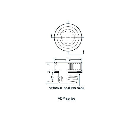 The ADP Series Threaded Aluminum Plugs are designed for forming a low-pressure seal with flareless tube ends. Featuring a dimpled nose section and a neoprene shoulder gasket for positive sealing, these plugs are made of 3003-0 Aluminum Alloy and are available in natural silver color. With optional gaskets in Butyl or Buna N rubber, these plugs meet MIL-C-5501/2 and NAS-842 specifications. Fit for 5/32 in tubes with 5/16"-24 thread size, dimensions B, C, and D are 0.340 in, 0.470 in, and 0.520 in respectively.
