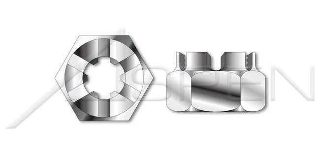 Also known as a castellated nut. Functionally interchangeable with slotted nuts.On castle nuts, the turret end is turned down enabling the lock pin to be wound against the turret.Lock the nut to a mated bolt by using a pin or wire threaded through the bolt and slots on the nut.Type 304 stainless steel is defined as a Chromium-Nickel austenitic alloy.Stainless steel significantly improves resistance to tarnishing or corrosion.