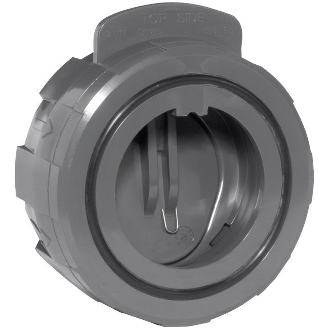 Robust Wide Pattern Body in PVC â No Need for Spacers or specialty flanges. One-Piece Disc and Shaft Design Designed for ANSI150 and PN10 Flanges High Cv Rating Equal to Metal Check Valves Lower Closing Pressure Than Swing Check Valves Integral Bolt Eyes for Ease of Installation for Large Sizes Can be Installed in Vertical or Horizontal Position FPM or EPDM Gasket and Face Seal Pressure Rated to 150 PSI / PN10 In All Sizes