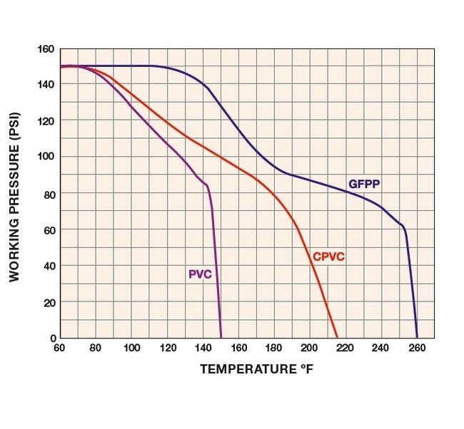 PVC per ASTM D1784 Cell Class 12454 CPVC per ASTM D1784 Cell Class 23447 GFPP per ASTM D4101 Cell Class 85580 FPM and EPDM Gasket and Disc Seals