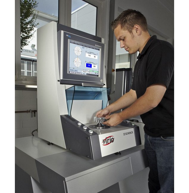 Force-measuring, vertical balancing machine with permanent calibration and automatic operationDesigned for table-top placement, suitable for a seated operatorBalancing unit, measuring unit and control cabinet are mounted on a common base plate.The dynamometer-mounted precision balancing spindle supports a removable adapter for centering the rotors and is driven by a flange-mounted electric motor.The protective enclosure designed according to ISO 21940-23 is part of the standard equipment.Measuring unit CAB 820 with colored, graphics capable LCD-Display. Cache memory for 99 rotor data and extensive basic configuration for the different correction methods.Optional: CAB 920 with Windows operating system, TFT color display with touchscreen function and vector view of the unbalance. Designed as network compatible embedded PC with memory card and permanent storage of the measured unbalance values. Simplest menu navigation in "Easy Mode".