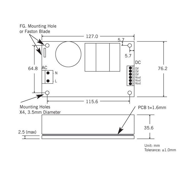 The ALS 50 Series features a robust 50W single output open frame switching power supply designed for versatile applications. With input voltage ranging from 90 to 264V AC and 120 to 370V DC, this power supply ensures reliable performance. It offers high efficiency at 70%, ripple/noise control for stable output, and comprehensive safety features like over current and over voltage protection. Measuring at 5.00in x 3.00in x 1.40in and weighing 300g, this power supply is compact yet powerful. Its EMC certifications and UL safety approval make it a trusted choice for various industries.