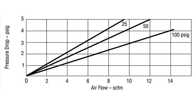 Flow scfm based on 5 psi Δp at 100 psig inlet.