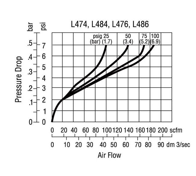 Flow scfm based on 5 psi Δp at 100 psig inlet.