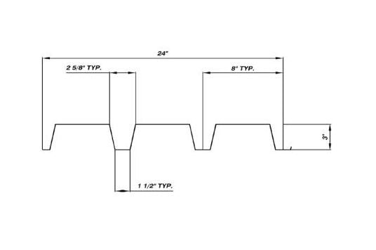 The ASTM A606 Weathering Steel N-Deck Corrugated Metal Sheet features a deep 3" profile for increased span and reduced metal thickness, making it ideal for roofing applications. Crafted with ASTM A606 weathering steel, this product offers the appearance of rust naturally. With thickness options of 18 gauge and 22 gauge, maximum length of 20 ft, and a width of 24 in, it provides reliable coverage. Trust in the quality from Corrugated Metals, Inc. for your roofing needs.