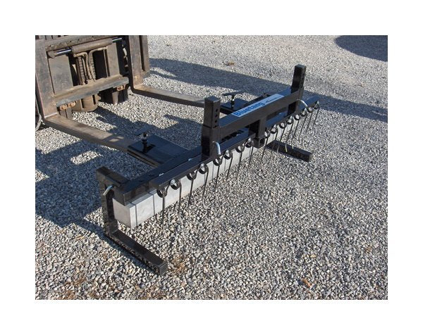 Use the Bluetang™ magnetic sweeper when debris could cause flat tires and a front mount sweeper is needed and you want to use a debris digging rake to disturb the ground to dig up debris. If you don't need a debris digging rake, opt instead for the Wrasse Series hanging sweeper mounted on the Fork Pocket accessory.