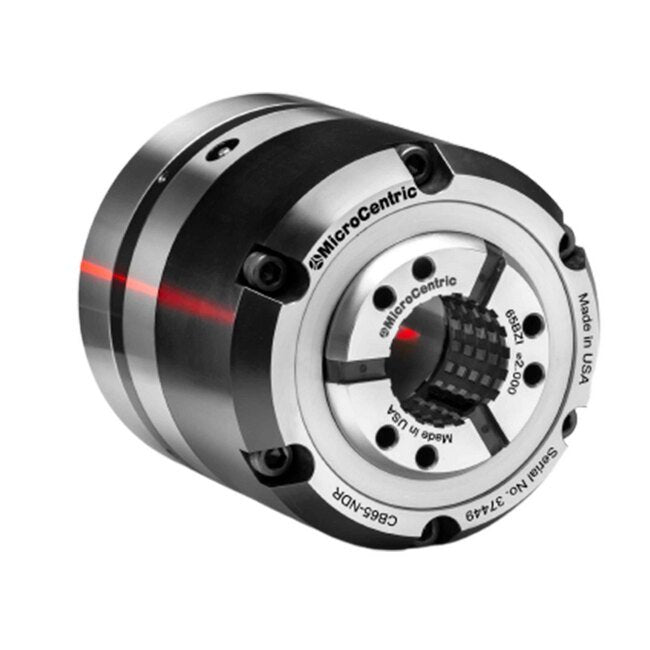 The CB-NDR Pull to Close Dead Length Collet Chuck is a patented design specifically tailored for servo stop bar loaders. This innovative design prevents the bar from being pushed off the servo stop by actuating as the draw tube is pulled towards the machine spindle. Featuring radial adjusting screws for precise chuck assembly alignment within .0002 inches, this chuck offers exceptional accuracy. The lubricated-for-life design minimizes maintenance needs, while all components are hardened and precision ground for longevity. With a Max. Clamp Force of 23,605 lbs and a Max. Speed of 6,000 rpm, the CB-NDR ensures high performance and durability, making it an ideal choice for machining applications requiring superior precision and reliability.