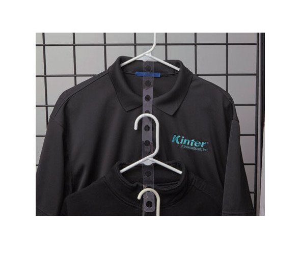 Effortlessly display multiple garments with our Clear PVC Merchandising Strip featuring 11 hanging holes. Durable, flexible, and elegant design.