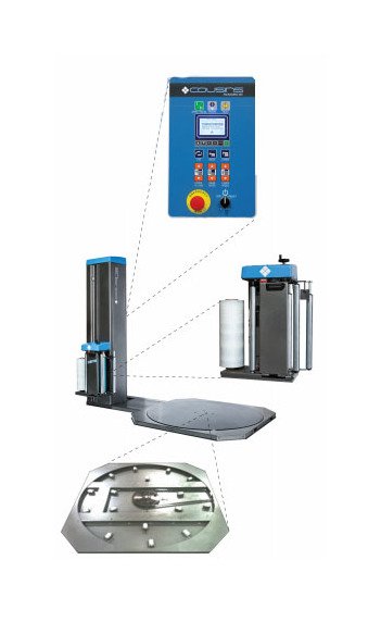 LCD operator interface with diagnostics.Cycle pause & reinforce wrap.Separate up/down spiral speed controls.3 separate wrap programs. Selectable reduced film tension parameters for wrapping top and/or bottom of light loads. Emergency stop button.3 year warranty on components.