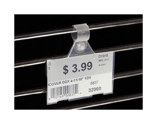 The Self-Piercing Covered Ticket Holder is a versatile solution for securely displaying common 1-1/4" height tickets, tags, or signs. Its double-notched, open-back, side-loading design allows for easy access. The solid clear face window provides protection while the ingenious fold-over clasp feature ensures effortless attachment to wire baskets, fences, grids, and displays. Constructed from durable polypropylene, this holder features a 3/8" wide self-attaching hinged clasp/strap. Packaged in sets of 200 for convenience and efficiency.