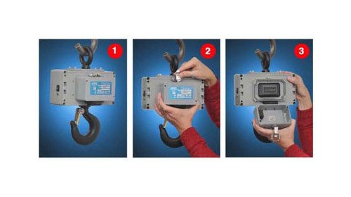 Model CSW-10AT-CS Series Crane Scale features with Cast Aluminum Enclosures. Spring loaded latch on battery compartment allows quick and easy access to the battery. This scale includes battery, internal battery charger with AC adapter/cable and external wall mount charger for continuous A/C or battery operation.