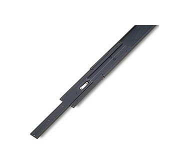 Right hand slide shown, left hand opposite.Finish: All standard slides are coated with Poxylube® dry film lubricant.All standard slides are designed to lock in the extended position.Automatic release is available if lock-out is not desirable.Standard hardware packages include all hardware necessary to mount Chassis Trak® slides:#10;-32 x 0.63 B.H.M.S. #10;-32 KEPS® nutsAll sliding members of this slide are made from cold rolled steel.All Chassis Trak® solid bearing slides are supplied with a quick disconnect feature. This permits the entire chassis to be easily removed and replaced.Pickup tab available for units without front panel. Optional mounting patterns, slide lengths and extensions are available.