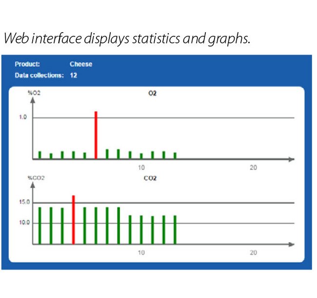 Insert the needle into the package through the septum and start test with the touch of a button.Within seconds, the Dansensor® CheckPoint® 4 displays the O2 or O2 and CO2 levels inside the package.On Premium models, data is saved to the instrument and can be transferred to your database via WiFi for traceability. The optional web interface provides statistical data for documentation.