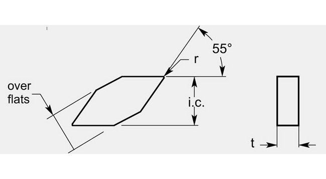 Enhance your turning projects with precision using Diamond Negative with Flats turning blanks. These blanks feature precise dimensional specifications with Thickness (t) of 0.135 / 0.143 in, and an Inscribed Circle (i.c.) of 0.410/0.416 in. The flats ensure stability during turning, while meeting high-grade standards, making them ideal for both consumer and institutional needs.