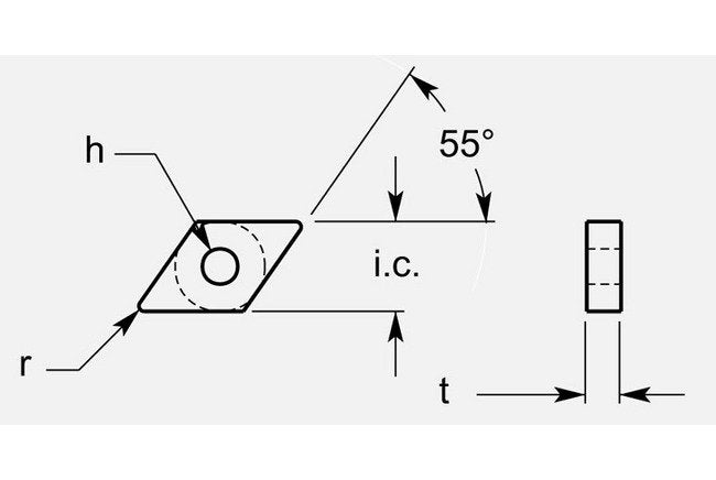 Enhance your turning projects with precision using the Diamond Negative Utility Turning Blank with Hole. With a thickness range of 0.260-0.268 inches and an Inscribed Circle of 0.622-0.628 inches, this blank offers exceptional quality and accuracy. The 55-degree angle and 3/64 inch radius ensure smooth and efficient turning. Grade availability can be customized based on your specific requirements. Perfect for turning blanks, this product guarantees reliability and performance.
