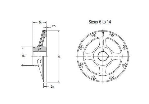 The Eaton-Airflex 14CB400 Element Spider Assembly is meticulously engineered for reliable performance in demanding industrial environments. This single connection assembly is optimized for high-speed operations, cyclic functions, and efficient power transmission. With a weight of 40 lb (23 kg) and dimensions tailored for precision, including D1 at 4.34 in (110 mm) and H11 at 20.00 in (508 mm), this Element Spider Assembly by Eaton-Airflex ensures seamless clutch and brake functionality. Trusted by industry professionals, this assembly is an ideal choice for applications requiring robust and dependable solutions.