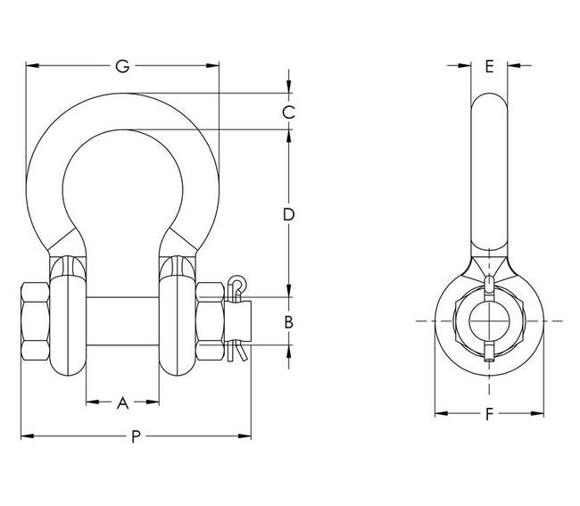 High-strength Galvanized Drop Forged Bolt Type Shackles for lifting and towing applications. Conforms to Federal Specification RR-C-271D.