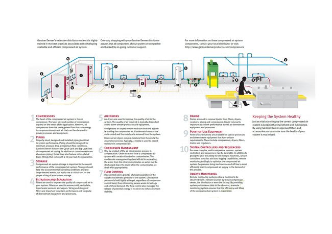 Let Gardner Denver™ Take ControlGardner Denver™'s extensive distributor network is highly trained in the best practices associated with developing a reliable and efficient compressed air system.One-stop shopping with your Gardner Denver™ distributor assures that all components of your system are compatible and backed by on-going customer support.