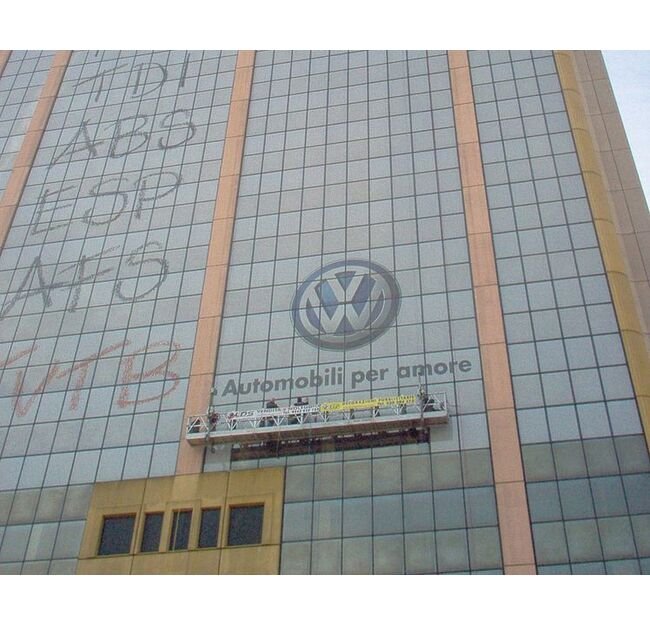 Angle track section and brackets make it possible to adapt the platform the different shapes of the buildings.GEDA rope suspended working platforms are of very high technical standard - the integrated inclination compensating device and the overload safety device allow for safe work!