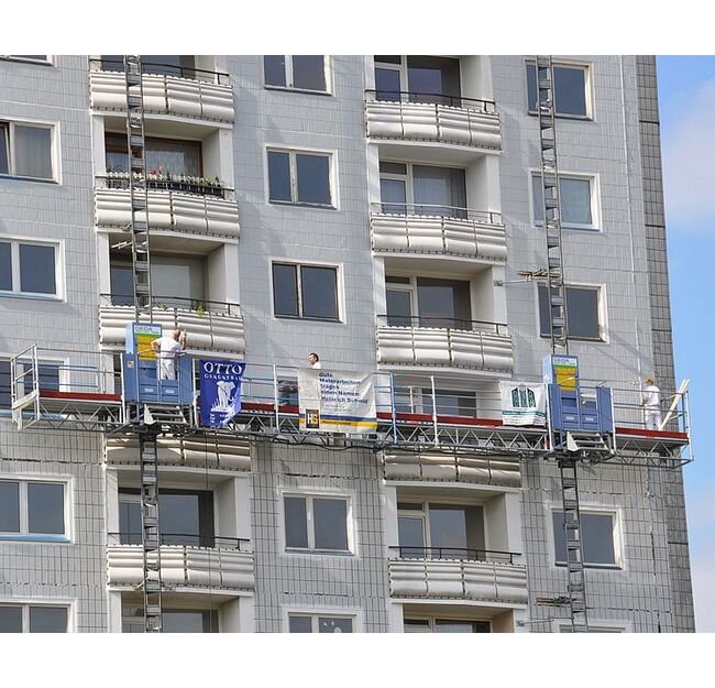 GEDA's "electrical scaffold", the mast climbing platforms GEDA MCP 750 (single mast platform) and MCP 1500 (twin mast platform) are convincing in many ways.Contrary to ordinary platforms, these mast climbing platforms are easy to handle. They can be assembled and dismantled without any problems.For the assembly of the pedestal, grid-supports for standard scaffold components, scaffold coatings, guardrails and toe boards are used. This means economic use in several ways. You can save money through short put-up and dismantling times and you can save your time through multiple-shift usage. Innovative technology in modular system!