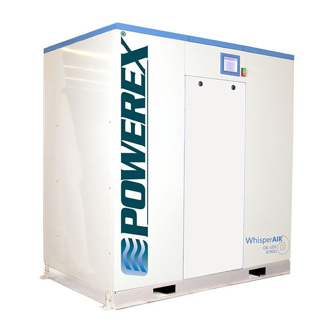Powerex® introduced the first dry scroll to the US oil-less compressor market in 1989.The enclosed scroll compressors feature compact footprints, energy efficient operation, low maintenance, and environmentally friendly design, all in one complete package.Redundancy is built into our system with our multiple pump design, eliminating the need to purchase an additional compressor.Why Powerex®?Powerex® has been designing and packaging systems since 1988 and has built a foundation on engineering, innovation, quality and service to become a leader in both air and vacuum systems. Because of our high level of vertical integration and a full in-house engineering team, Powerex® has the ability to customize a system to meet your air or vacuum requirements.