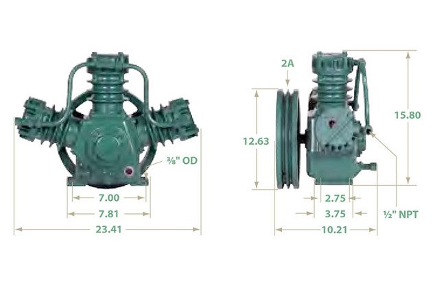 Single-Stage Electric DrivenThe single-stage series of Commandair air compressor packages are available from 1/2 through 3 HP, with the option of horizontal or vertical style receivers, or as base mounted. Air pressure ratings are available up to 125 PSIG. Thermal overload protected motors are standard on 1/2 through 1 HP, single phase, 115 Volt units.Cast iron cylinders for holding rigid tolerances and ensuring high compressor efficiency.Lightweight aluminum alloy pistons ensure proper reciprocating balance. Two compression rings and one oil-control ring are used for better oil control, less air blow-by, and higher efficiency.High density, high silicon die-cast aluminum alloy connecting rods minimize reciprocating weight and help promoted exceptional compressor life. High-quality Swedish Steel reed-type valves provide long life. Tapered roller bearings on two and three cylinder models provide premium low friction movement for minimized efficiency. Precision balanced flywheel has fan blades for maximum compressor cooling resulting in cooler compressor operating temperatures. Rugged ductile iron crankshaft has large diameter throws for minimum bearing loads and counterweights to minimize vibration. Rugged cast iron crankcase designed to rigidly support the crankshaft and bearings. Convenient oil level sight gauge on 2 and 3 cylinder models. Removable cartridge-type intake filter features a 10-micron rated element.