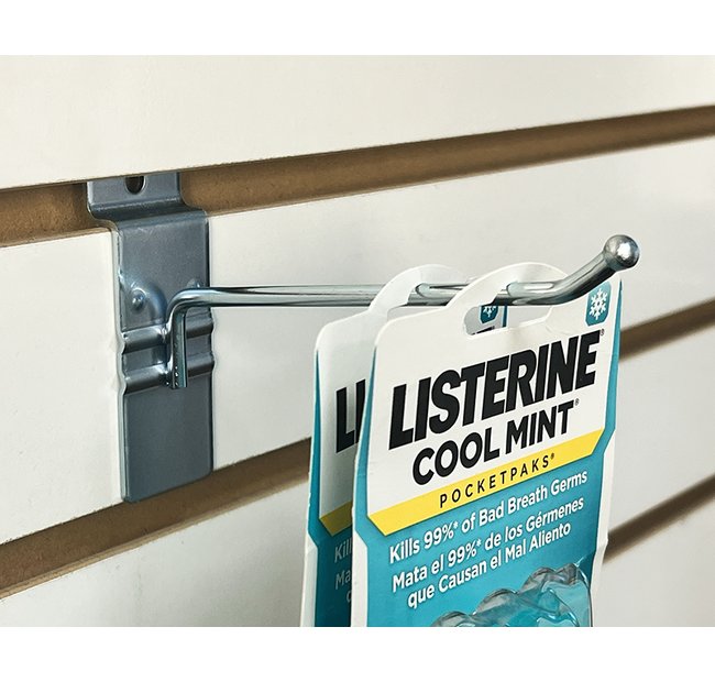 Heavy-Duty Single-Prong Slatwall Hook - Sturdy steel construction, .186" dia wire gauge, 10" stem length, Black Finish. Organize securely!