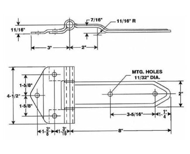 8 Ga. x 4-1/2" x 3" from center of pin