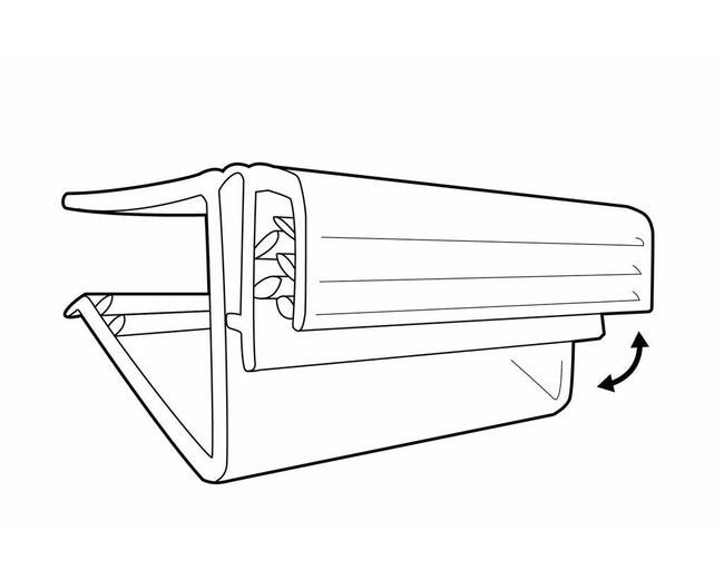 Versatile Hinged Gripper Sign Holder for secure and flush display on shelves. Built-in hinge for easy access. Durable PVC material for signs up to 0.080" thick.