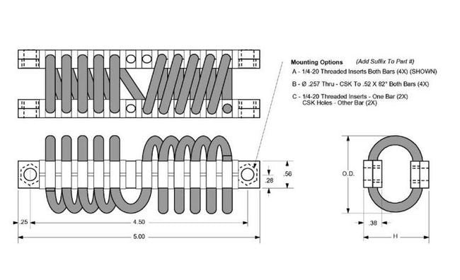 Iridited aluminum bars are standard; however, other materials and finishes can be used.Variations in cable configuration are available if the standard is not suitable.From basic transportation to aerospace, there is an application for Helical Isolators from America's Oldest Springmaker.