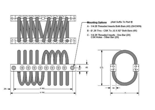 Iridited aluminum bars are standard; however, other materials and finishes can be used.Variations in cable configuration are available if the standard is not suitable.From basic transportation to aerospace, there is an application for Helical Isolators from America's Oldest Springmaker.