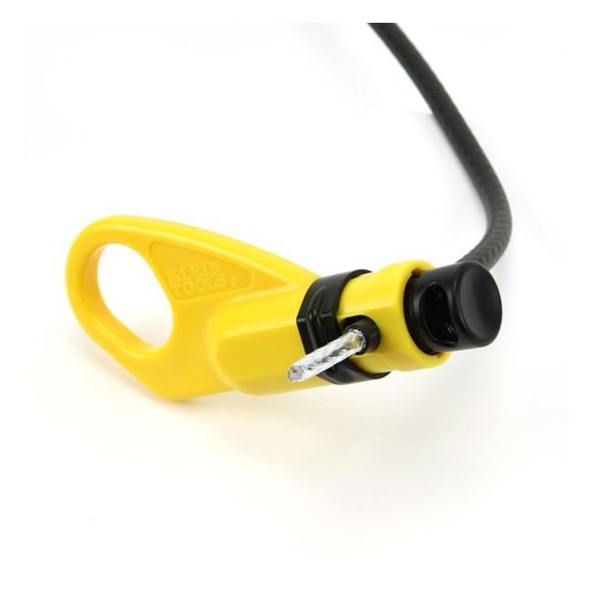 "Klein®'s coaxial cable stripper features exclusive sliding cable stop that pre-measures cable for fast, accurate and repeatable strips.""For RG59/RG6/RG6Q coaxial cable performs complete preparation/stripping in one step - 5/16"" and 1/4"" (7.9 mm and 6.4 mm).""Durable high-carbon steel pre-set cutting blades automatically adjust to different cable diameters for precise, accurate cable stripping.""Finger loop design facilitates easy, controlled rotation.""Bright, highly visible color for quick identification.""U.S. Patent No. D688,927."Read carefully and understand instructions before using this tool.Always wear approved eye protection.NOT insulated. Will NOT protect against electrical shock.