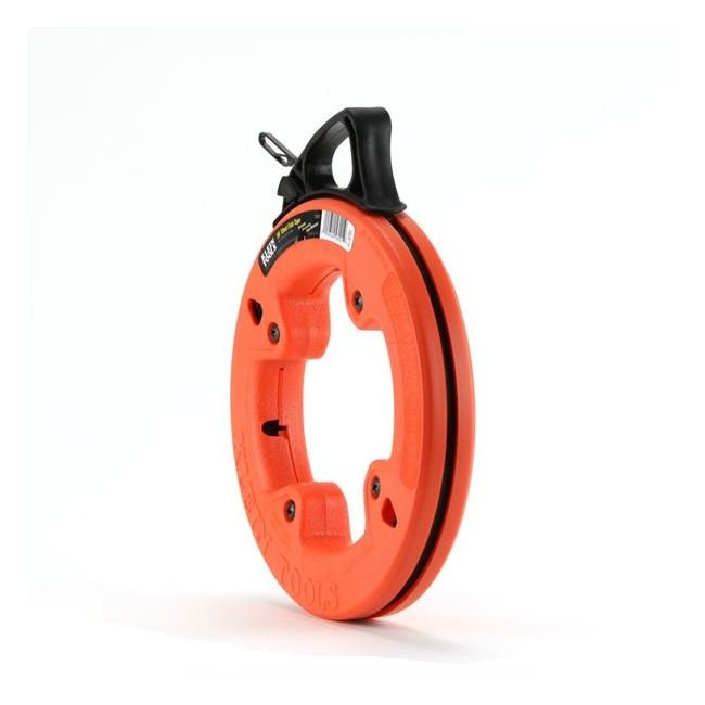 High strength spring steel fish tapes are stiff for long runs and are great for heavy duty wire pulls.Laser etched markings in 1' (0.3 m) increments allow you to more accurately measure the depth of conduit runs and determine the amount of tape left to pay out.Polypropylene case and handle offer the maximum in impact resistance."Full grip-style handle gives you a firm, steady grip as you pull tape from the case."Raised finger grips transfer 100% of the winding power from your hand and fingers.Unique sloped handle optimizes hand position for quick hand-over-hand rewinds."Patents: D574,277; 8,212,178; 8,168,921; 8,164,025. Other Patents Pending.""Wear approved eye protection when feeding, pulling or rewinding fish tape."Do NOT use any fish tape on or near live circuits. Use extreme caution when working near any electrical equipment.Use a safe work position to avoid loss of balance when using fish tape.Never form pulling loop into a single loop (into shape of a fish hook) or create a sharp edge that could cause fish tape to catch on other objects or cut into insulation of surrounding wires. Pulling loop should only be formed into a double loop.