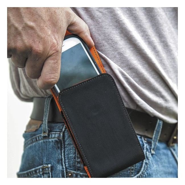 "Fits iPhone® 6, Samsung Galaxy S 3/4 and similar sized phones."Magnetic flap closure.Metal clip for attaching to belts up to 2'' (51 mm) wide.Constructed of 1680d Ballistic weave.
