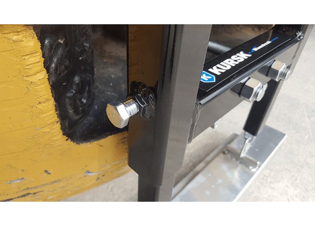 The Kursk™ keeps it simple. One size. Easy Fit. Economical.Simple Pin Hook Mounting SystemThe Kursk™ mounts on the rear pin of the forklift and doesn't interfere with exhaust even if the exhaust on your forklift is vented through the pin slot.No modifications to your forklift are necessary to mount the Kursk™. The Kursk™ Only uses the existing pin on your forklift for mounting. You don't have to modify, weld on or drill into your forklift to mount the Kursk™. Simple!!