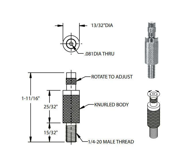 Kwik-Grips Bottom Exit Gripper with Safety Nut 1/16" Cable 1/4"-20 Male