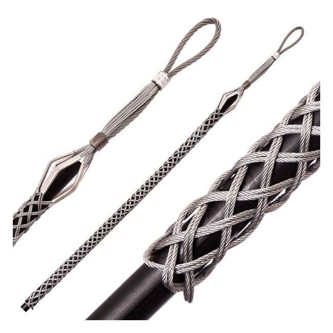 Designed for high-tension overhead line-stringing, the Lewis WRC-HD Overhead Pulling Grip offers durability and strength for bare or insulated wires. Featuring a reverse weave design with a robust single-cable eye and aluminum protective shoulders, this grip ensures secure pulling operations. With an Ultimate Tensile Strength (UTS) of 25750 lb and a 5:1 UTS to Work Load Ratio, the WRC-HD is suitable for heavy-duty applications. Available in 4 sizes ranging from 1/4" to 2", this grip accommodates wire and rope diameters from 0.80 to 1.375 inches, providing reliable performance in challenging environments.