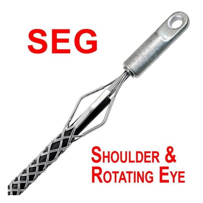The Lewis Overhead Pulling Grip is a robust solution designed for wire pulling applications in demanding environments. Featuring a hardened steel rotating eye, this grip offers exceptional durability and efficiency. With a work load of 3500 lb and an ultimate tensile strength of 7000 lb, it ensures reliable performance. The SEG Models with swivel eye grips allow seamless threading through blocks and sheaves without binding. Not a ball bearing swivel, this grip efficiently relieves pulling torque when tension is released. Upgrade to this pulling grip for superior strength and functionality.