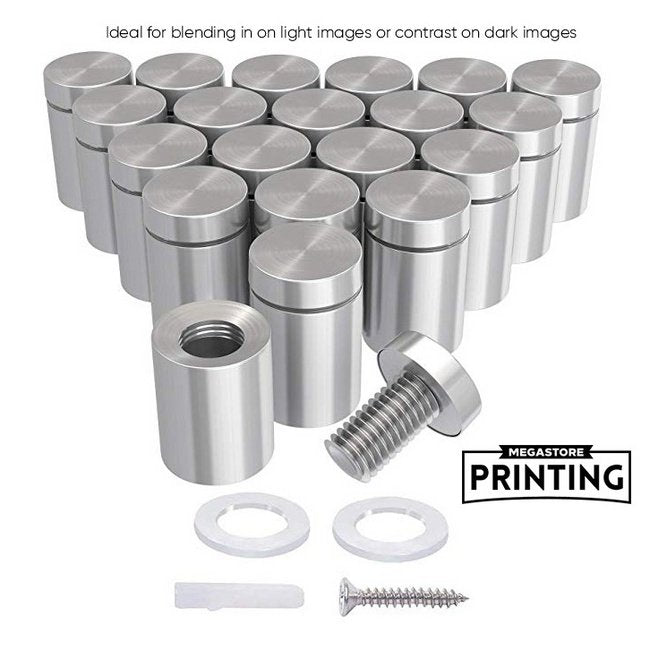 4 BLACK Standoffs with pre-drilled holes in the image | 4 STEEL Standoffs with pre-drilled holes in the image | Hanging mounts or rails depending on size | None, I will mount/frame it myself