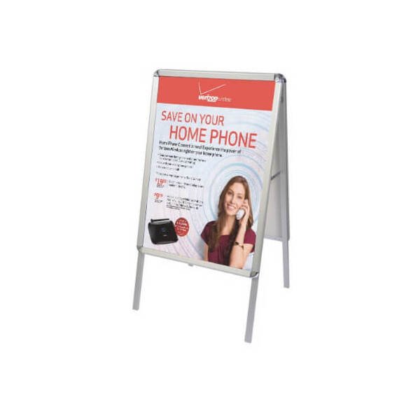 Durable A-Frame Poster Stand with Snap-Open Frames & Clear Acrylic Covers. Includes (2) 23.5" x 33.5" Vinyl Prints.