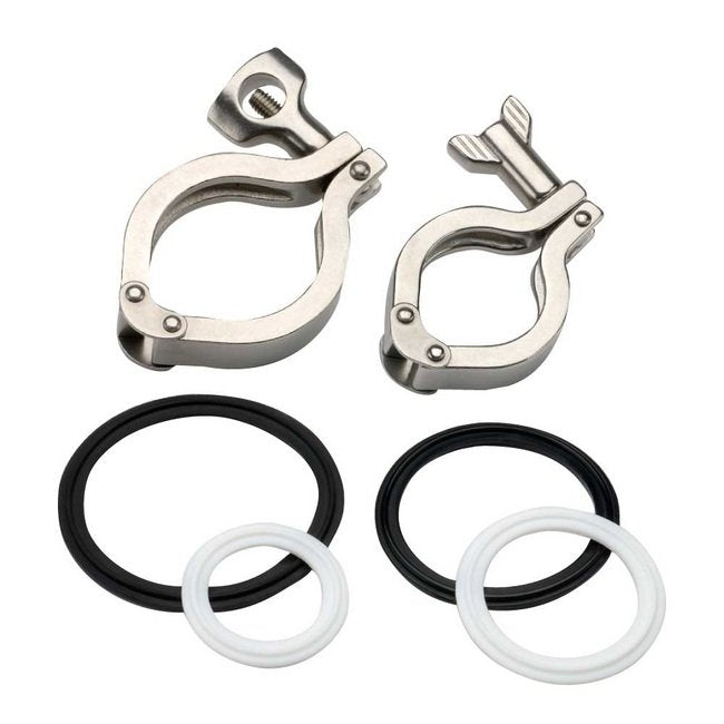 Clamp-style fittings are constructed of T304 Stainless Steel; T316 Stainless Steel on requestDouble hinge design for easy installation and removalAvailable in sizes from 3/4" to 4"Standard pressure rating of 500 psi at 70 ºF (21 ºC); up to 3,000 psi rating on requestClamp gaskets are available in NBR, EPDM, PTFE and FKMAll clamps and gaskets meet FDA and 3A sanitary standardsASME-BPE Sanitary Clamp1-1/2" (CR 12)2" (CR 16)2-1/2" (CR 20)3" (CR 24)NBR Gasket1-1/2" (BG 12)2" (BG 16)2-1/2" (BG 20)3" (BG 24)PTFE Gasket1-1/2" (TG 12)2" (TG 16)2-1/2" (TG 20)3" (TG 24)