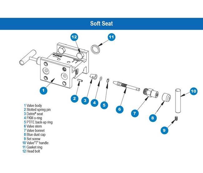Soft SeatsPEEK (PK1)PCTFE (KF1)PackingsPTFE (P1)Graphite (P2)Note for Packings - If a packing option is chosen, maximum pressure rating is 6,000 psi. Refer to the "Pressure vs Temperature: Packing Style with Compatible Fluid" chart.Stem TipsNon-rotating (316 stainless) (T1)Ball (carbide) (T6) - For 2000 Series only.Ball (Monel) (T8) - For 2000 Series only.Ball (440C stainless) (T5) - For 2000 Series only.Ball (ceramic) (T7) - For 2000 Series only.Non-rotating regulating (316 Stainless) (T9) - For 2000 Series only.O-ringsEPDM (EM1)FFKM (Perfluoroelastomer ( FFKM) 3018 or equivalent) (KZ1)NBR (NB1)Note for O-Rings - Other o-ring materials available on request.Handles1-13/16" Mini "T" (HL1)1-3/8" Phenolic (HL4)1" Round knurled (HL3)1-3/4" Phenolic (HL5)