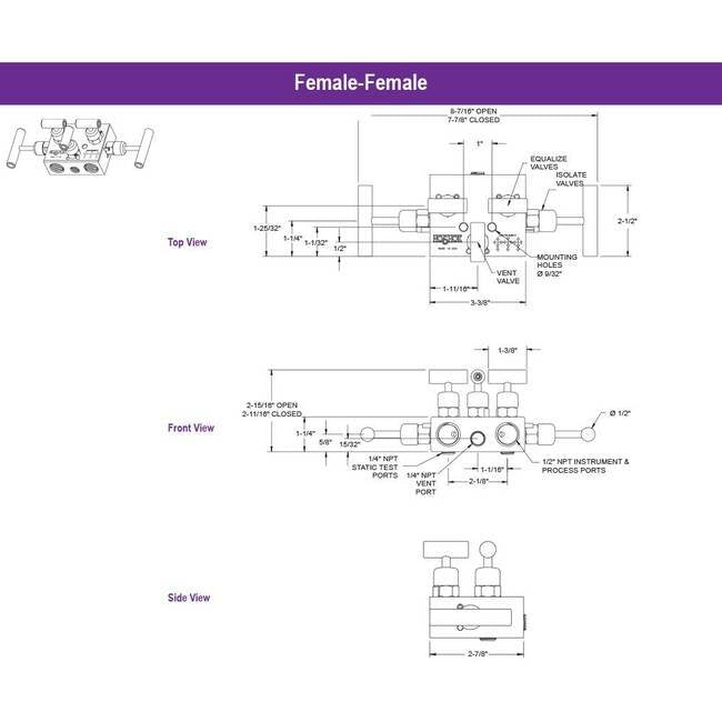 Two static (test) ports, color coded vinyl bonnet and stem dust cap, patented soft seat/tip stem design on equalizing and vent valves.